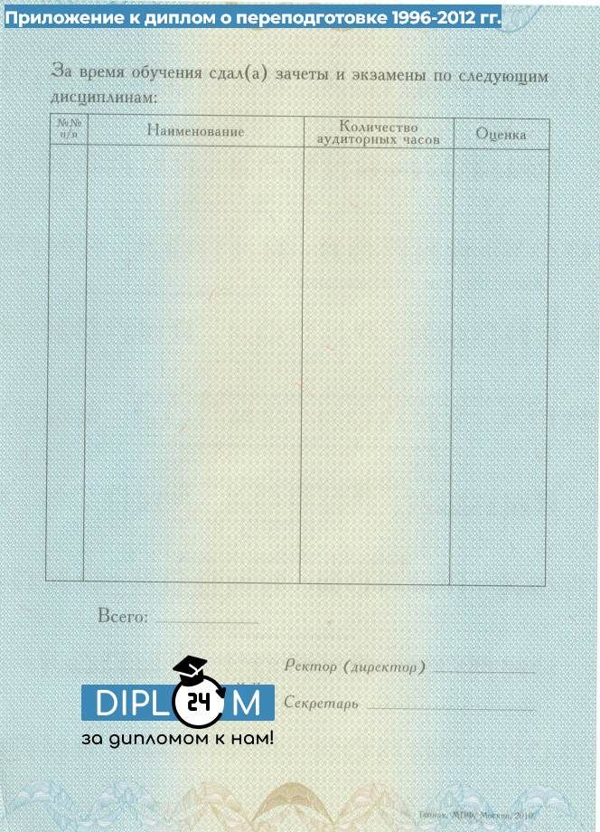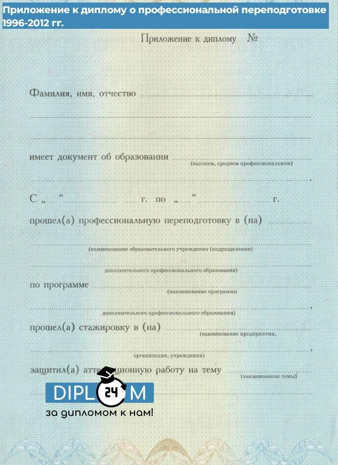 Диплом о профессиональной переподготовке 1996-2012 гг.